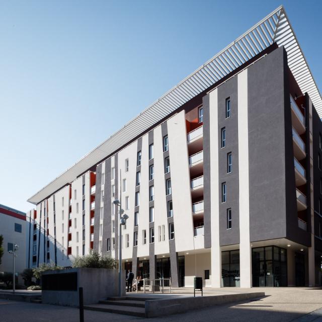 Avec son allée de platanes menant aux fameuses arènes de la ville, l’avenue Feuchères, à la sortie de la gare, a de quoi marquer les visiteurs qui débarquent à Nîmes. Ce Champs-Élysées local trouve désormais son prolongement (piéton !) du côté sud de la gare, où un quartier a émergé. Avec ses nouveaux logements mais aussi commerces, cinéma et « rue de la soif » à proximité, l’avenue de la Méditerranée est en effet devenue l’une des place to be de la ville. C’est là, dans un cœur de ville toujours trépidant, que nous nous sommes engagés (à l’époque sans exploitant et dans l’optique de sécuriser le promoteur qui venait de lancer le chantier) pour investir dans ce qui est aujourd’hui la résidence universitaire que tous les étudiants s’arrachent. Avec un bail de onze ans, nous avons donc fait parler notre vision patrimoniale long-termiste sur un bâtiment qui, à l’instar du quartier, s’avère à la fois moderne et esthétique. Un investissement qui se veut aussi durable, puisqu’en cas de non-reconduction du bail, nous avons prévu la réversibilité des lieux, avec des chambres étudiantes qui pourraient se transformer et être revendues sous forme de studios-appartements.