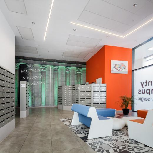 Une résidence en plein cœur de Nîmes à la fois moderne et esthétique : un projet structurant pour la ville que nous avons mené tout en apportant une vision durable : une possible réversibilité des lieux en logements en cas de non-reconduction du bail.