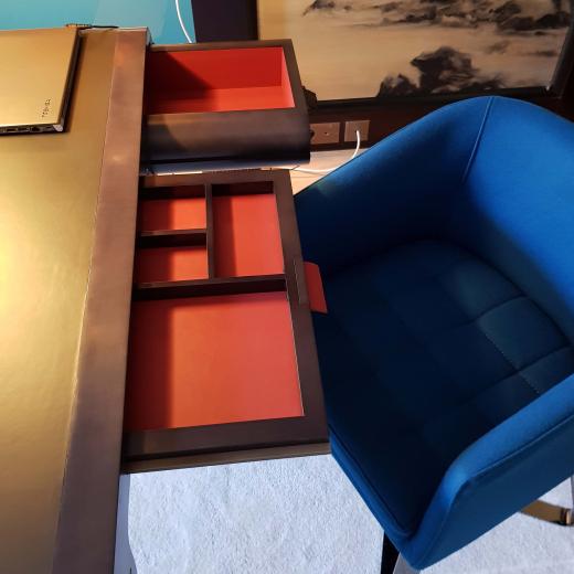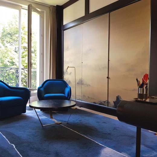 À peine le pas de la porte franchi, le coup de foudre est immédiat. Difficile en effet de ne pas succomber à cet hôtel particulier aux façades classiques qui replonge aussitôt au cœur de l’aristocratie des années 1900 et, cerise sur le gâteau, donne sur le Champ-de-Mars. L’intérieur, lui aussi, est une œuvre d’art à lui seul. Il faut dire que l’architecte d’intérieur Pierre Yovanovitch est passé par là. Pour offrir une touche plus intimiste au lieu, Pascal Allaman signera le deuxième étage en s’inspirant du Japon, une artiste allemande créera une atmosphère végétale dans la suite parentale avec des panneaux en bois brut ornés de feuilles d’étain sculptée à la main, et un escalier hélicoïdal fera son entrée au cœur d’un atrium de 17 mètres de hauteur… Un projet monumental en tout point.