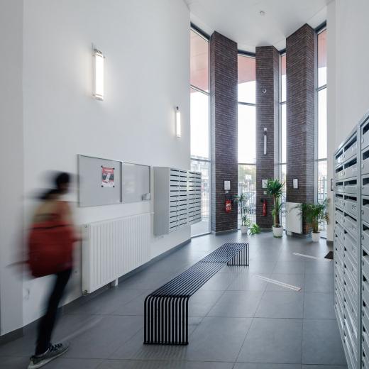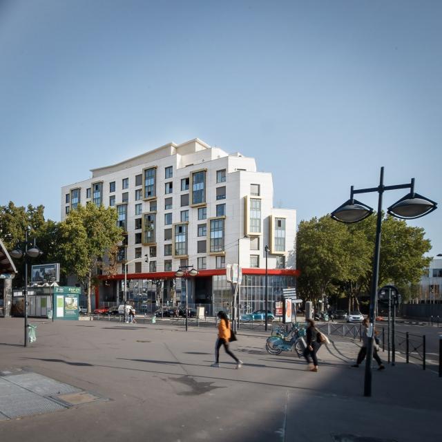 Impossible d’imaginer que, quelques années en arrière, c’est un garage automobile qui siégeait à cet emplacement unique, face à l’Université Paris 8 et au pied du métro. Mais pas impossible pour nos équipes (!), puisqu’une façade (d)étonnante ainsi qu’un mur devenu fresque géante grâce au travail de street artistes font du nouveau bâtiment un lieu devant lequel on prend forcément le temps de s’arrêter. Fini les allées et venues de véhicules cabossés ! Des couloirs généreux aux espaces communs, de la salle de sport aux terrasses où certains bichonnent quelques plants de tomates, plus de 170 étudiants se croisent aujourd’hui dans cette résidence qui affiche complet depuis son ouverture en septembre 2019. Pour que l’édifice dessiné par l’architecte Jacques Soucheyre sorte de terre, nous avons su montrer notre capacité à répondre à la demande d’une Région où les logements étudiants font cruellement défaut, en assurant à la fois l’accompagnement de l’occupant précédent vers la fin de son activité, la conception-réalisation mais aussi la gestion immobilière de la résidence. Un véritable projet à 360° dont nous avons conservé le patrimoine !
